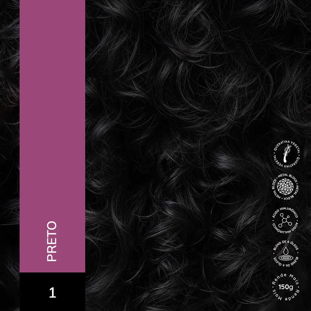 Creme com Tecnologia Metal Block (ação antioxidante) que remove impurezas e metais pesados, protegendo seus fios. Enriquecido com Ácido Hialurônico para maciez e cor duradoura, e um Blend de Óleos Nutritivos (coco, argan e mais) para nutrição profunda.