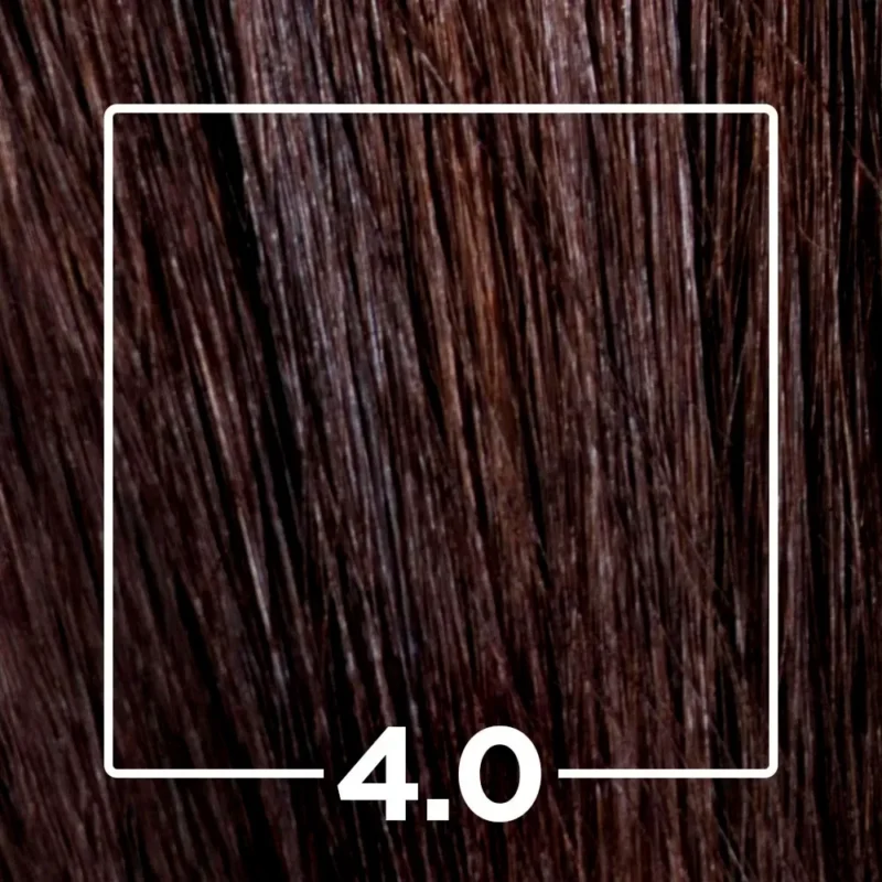 Castanho Rico e Natural: A nuance 4.0 Castanho proporciona uma base neutra, intensa e uniforme, ideal para quem busca uma cor clássica e sofisticada, com alta fidelidade ao tom.