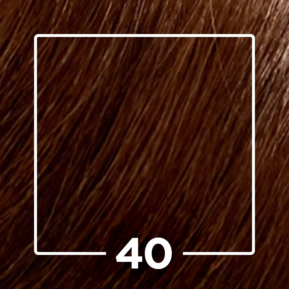 Castanho Médio Natural: A nuance 40 Castanho Médio oferece um tom clássico, equilibrado e com um brilho natural que cobre imperfeições com perfeição.