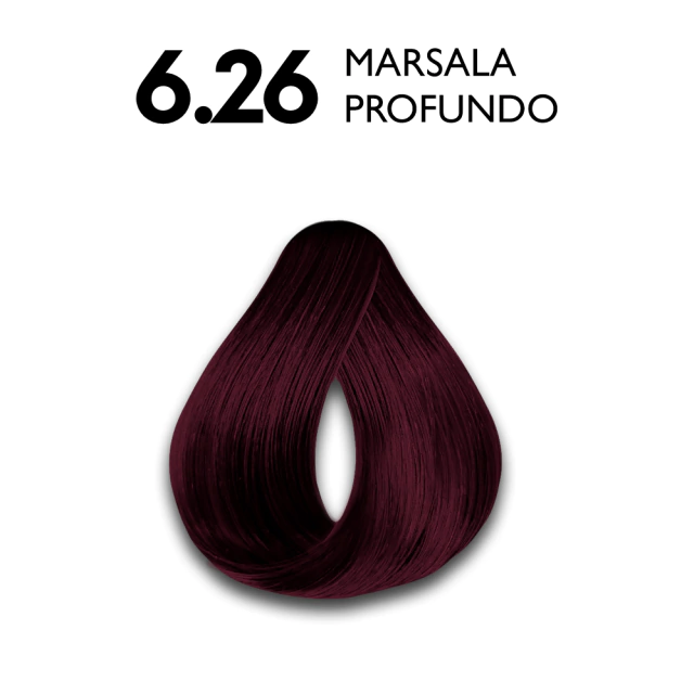 Marsala Profundo e Magnético: A nuance 6.26 Marsala Profundo entrega uma cor intensa e marcante, com reflexos que criam um visual luxuoso e super atual.